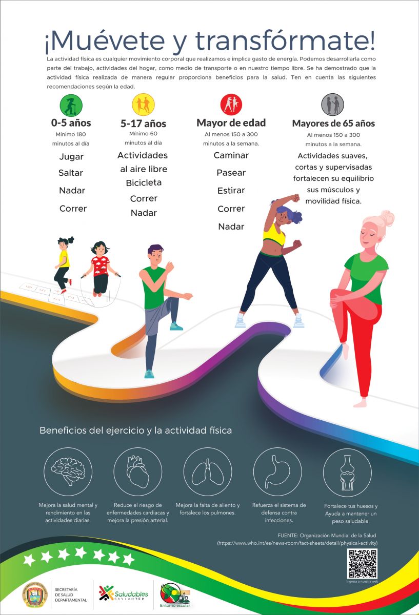 La actividad física comprende cualquier movimiento corporal producido por los músculos esqueléticos que exija gasto de energía. Realizar actividad física optimiza las funciones cognitivas, el estado de ánimo, contribuye a mejorar el rendimiento académico, además reduce el riesgo de presentar enfermedades cardiovasculares y respiratorias y otras enfermedades físicas y mentales.